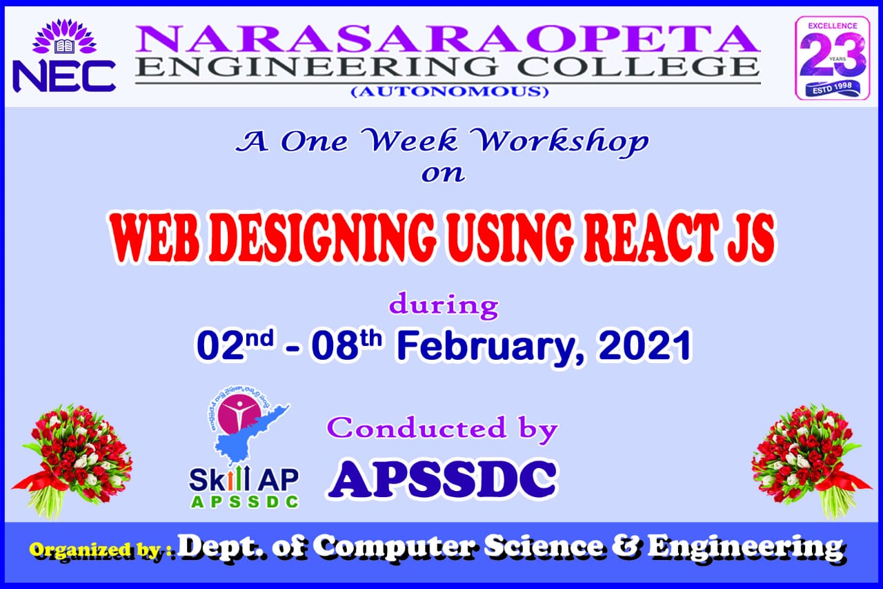 - 08-02-2021: A Six day Workshop on Web Designing Using React JS